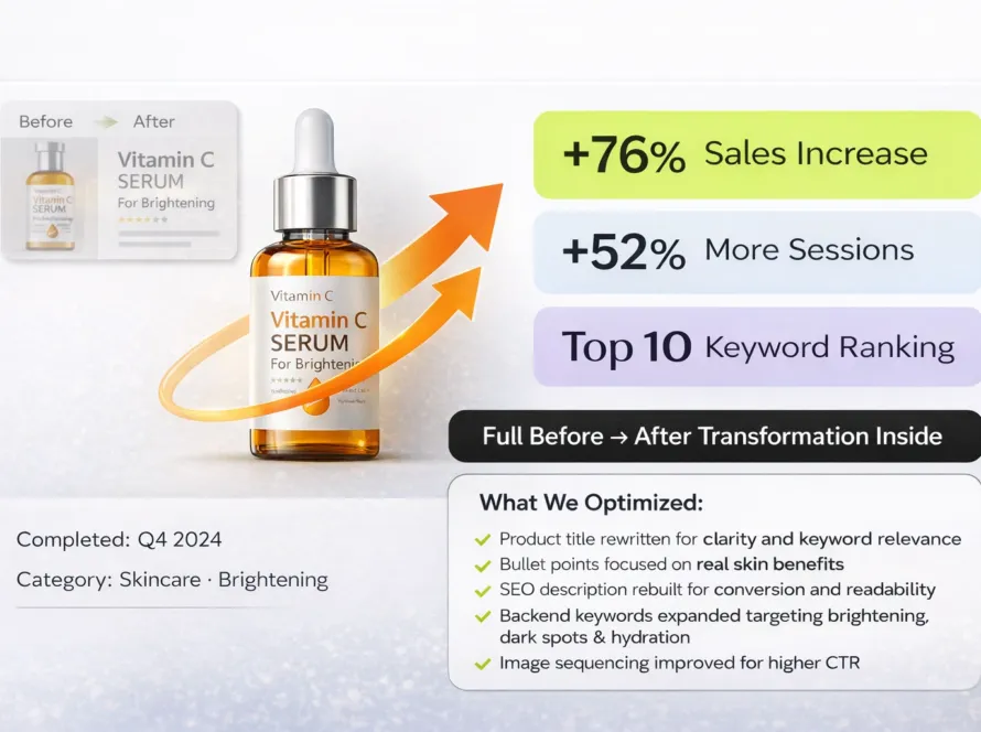 We turn underperforming product pages into revenue assets by rewriting titles, bullets, and descriptions to match how real shoppers search, compare, and decide to buy.